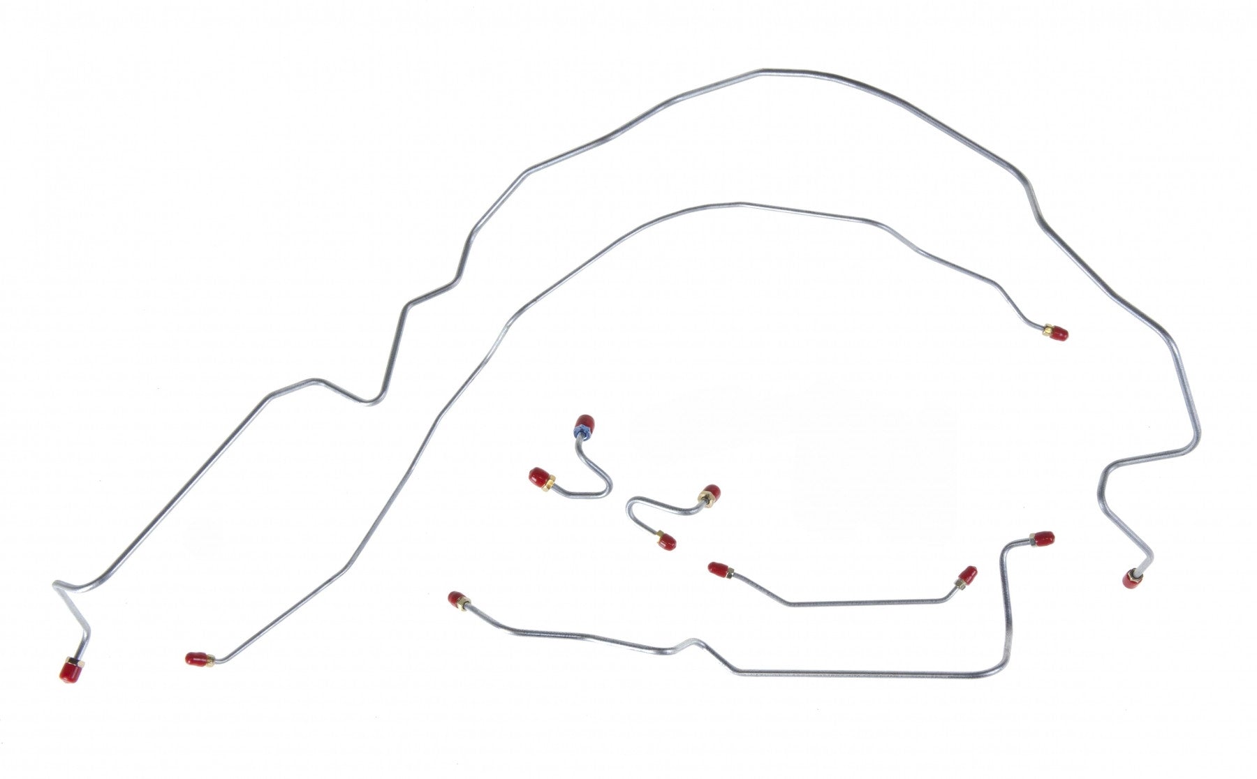 Our complete formed brake line sets will be exact reproductions of your factory lines with the correct size fittings and spring guard in all the places it came from the factory. All of the prebent lines throughout the entire vehicle are included. This means from the master cylinder down to any blocks, out to the two front wheels, the long line that runs to the rear end and the two over the rear axle. Complete and bent to perfection. Don't need a complete set? Give us a call at 614-557-3442 and we can get you taken care of.