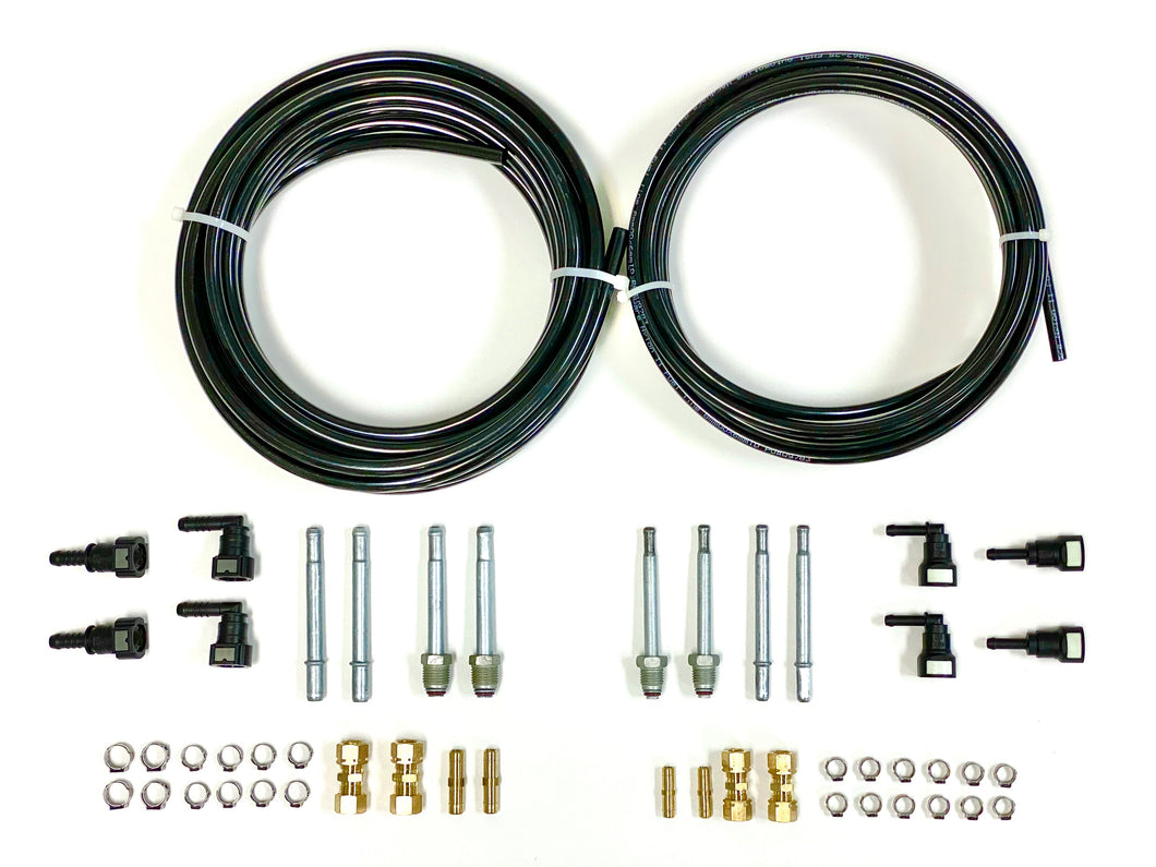 This is our complete nylon fuel hose kit that we believe every shop should have on their shelf. This kit includes the most common parts needed to change or fix any fuel line problem.